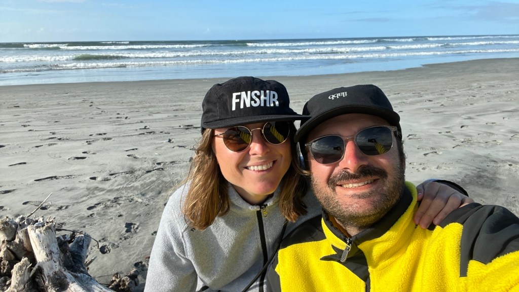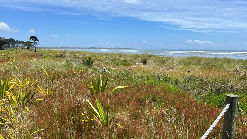 Au réveil, tout est resté sec, malgré l’humidité de l’océan qui se faisait sentir la veille. Nous profitons de cette escale pour une méga lessive, une balade sur le sable, et pour goûter les fameuses whitebait.